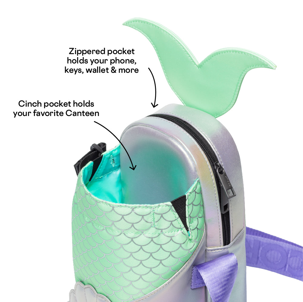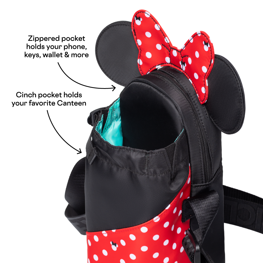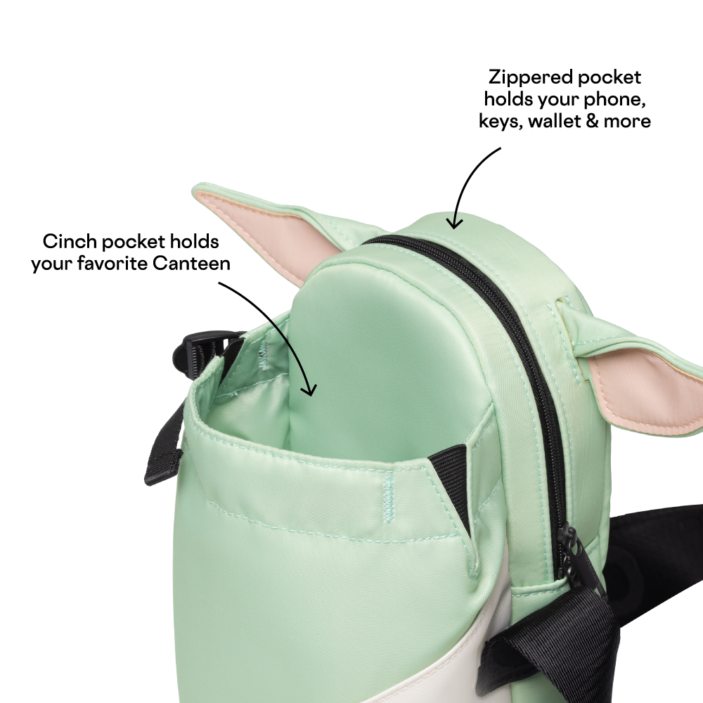 Keep your pockets light, your hands free, and your style on point with our best-selling character slings. These comfy crossbody carry-alls includes unique character features and an adjustable strap. The Sling securely holds your favorite Canteen in the front pouch, while cash, cards, phone, and keys are securely zippered in the back pocket.