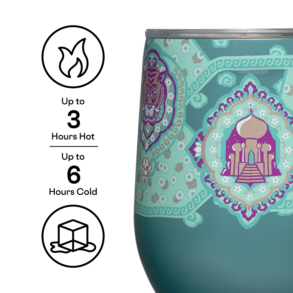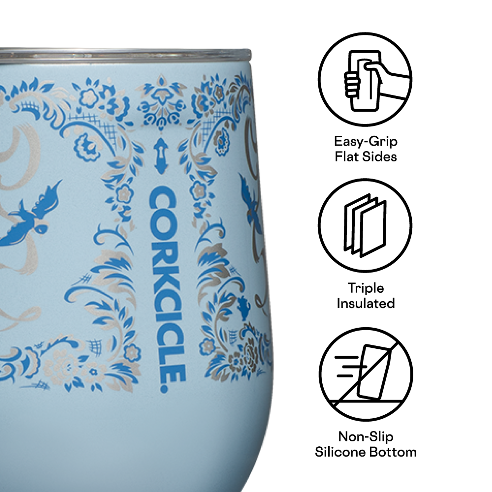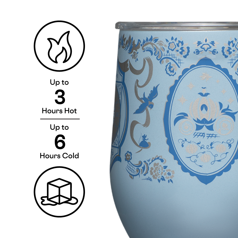 Drinkware fit for a princess. Adorned with your favorite characters, the Disney Princess Stemless was made with wine in mind, but can be used for drinks of every kind. Stemless Wine Cup holds 12oz of your favorite beverage. Plus, it comes with a sliding, shatterproof, see-through Lid.